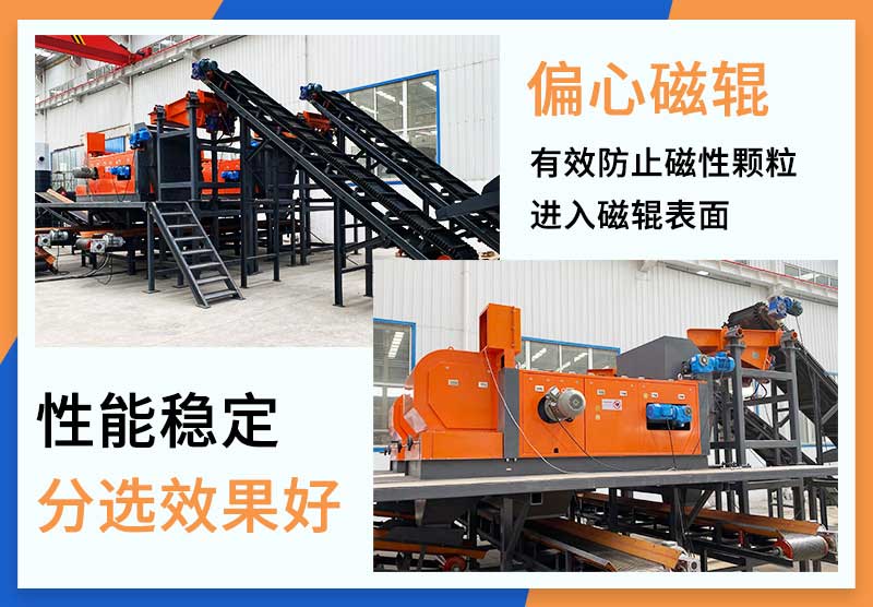 偏心渦電流分選機(jī)采用一體化的設(shè)計(jì)理念,將振動(dòng)給料機(jī)、磁輥、磁滾筒、輸送皮帶機(jī)、渦電流分選主機(jī)集成于一體,可以減少設(shè)備總體積。設(shè)備前端,通過磁選原理,去除物料中夾雜的鐵質(zhì);設(shè)備后端,通過渦電流原理,將物料中的銅鋁等有色金屬雜質(zhì)通過作用力彈射出來,最終達(dá)到分離鐵質(zhì),有色金屬,和其它物料的效果。